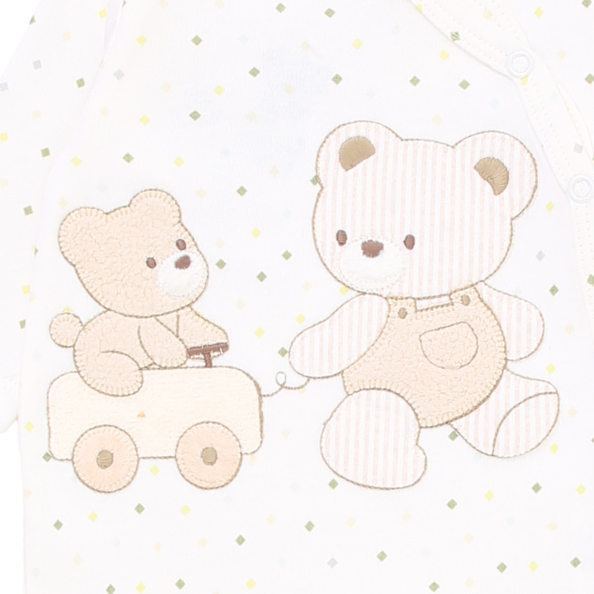 Macacão Longo Bebê Day By Day Suedine Estampa Bordado Ursinho Neutro