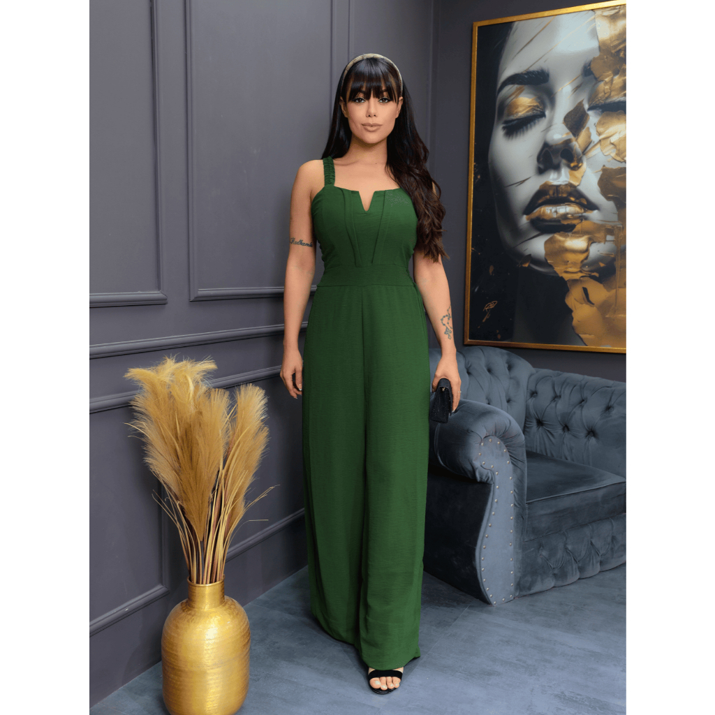Macacão Longo feminino duna decote v calça com alça grossa casual elegante