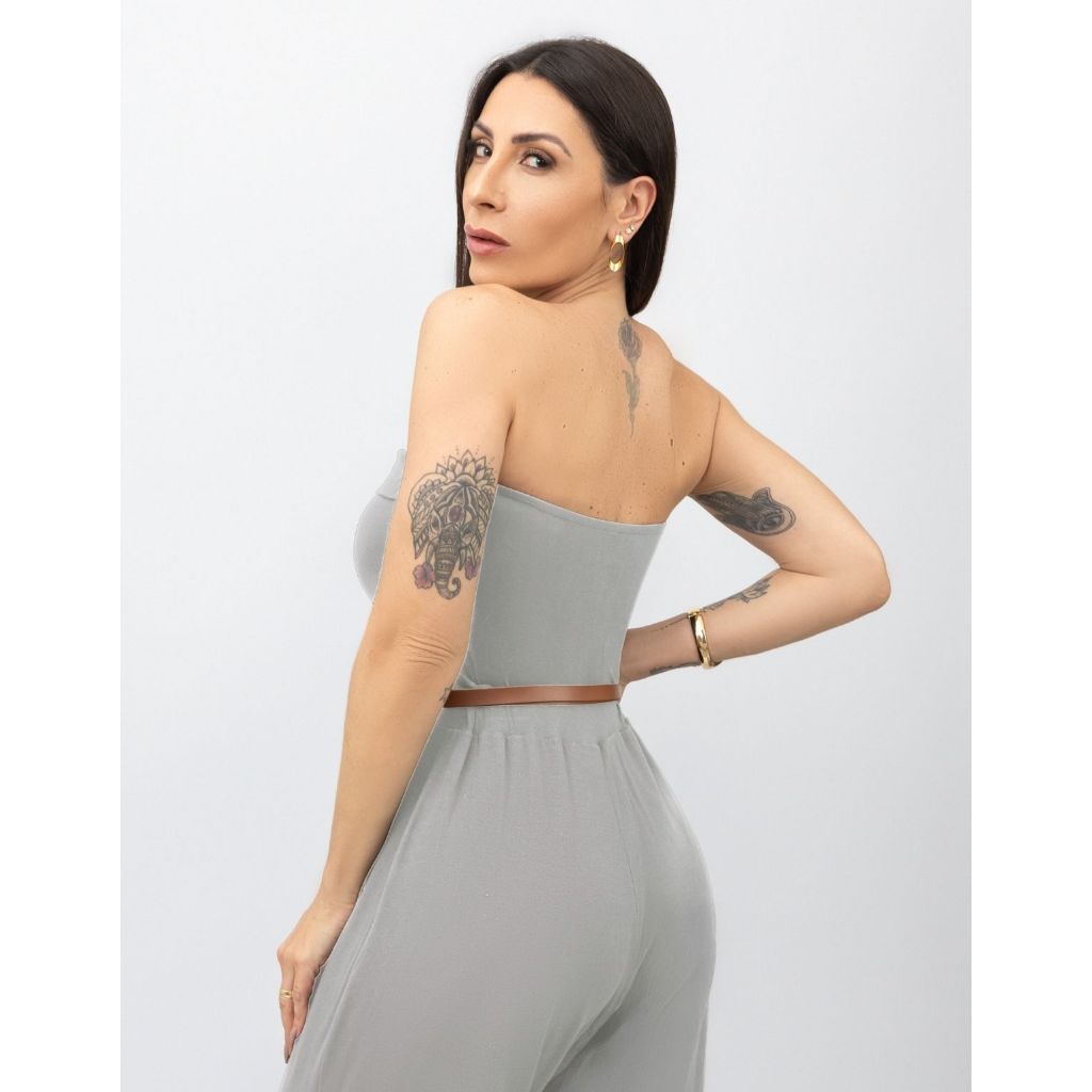 Macacão Longo Feminino Ombo A Ombro Tomara Que Caia Elegante Moda Casual