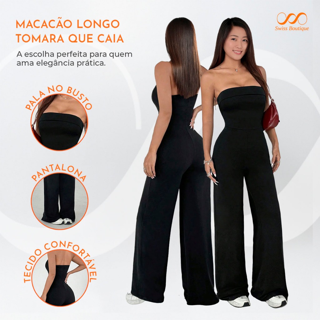 | Macacão Feminino com fenda, longo e solto, super elegante | R$ 49,99 | — | 4.8/5 | 2.5 mil |