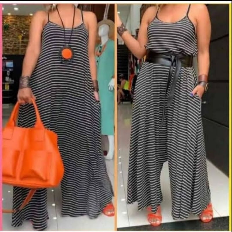 PEÇAS AMPLAS... macacão flare longo de alcinha, moda despojada..peças amplas tecido malha viscolycra composição 96% viscose 04% elastano P 38/40 M 42/44 G 46 GG 48/50