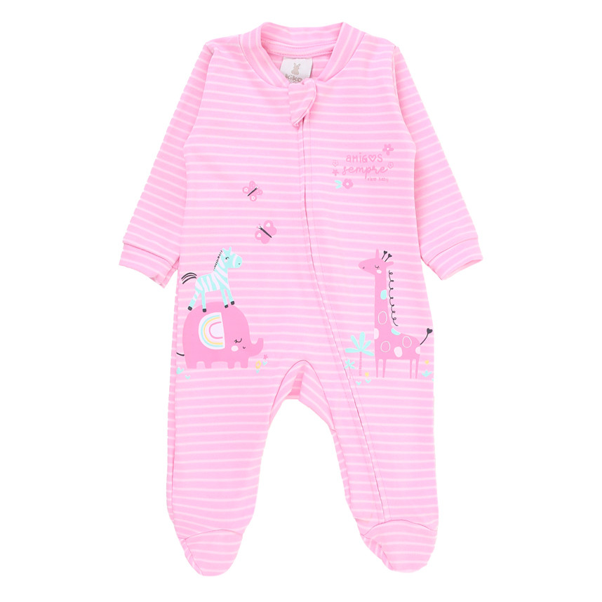 Macacão Longo KiKo Baby Amigos Bichinhos Listrado
