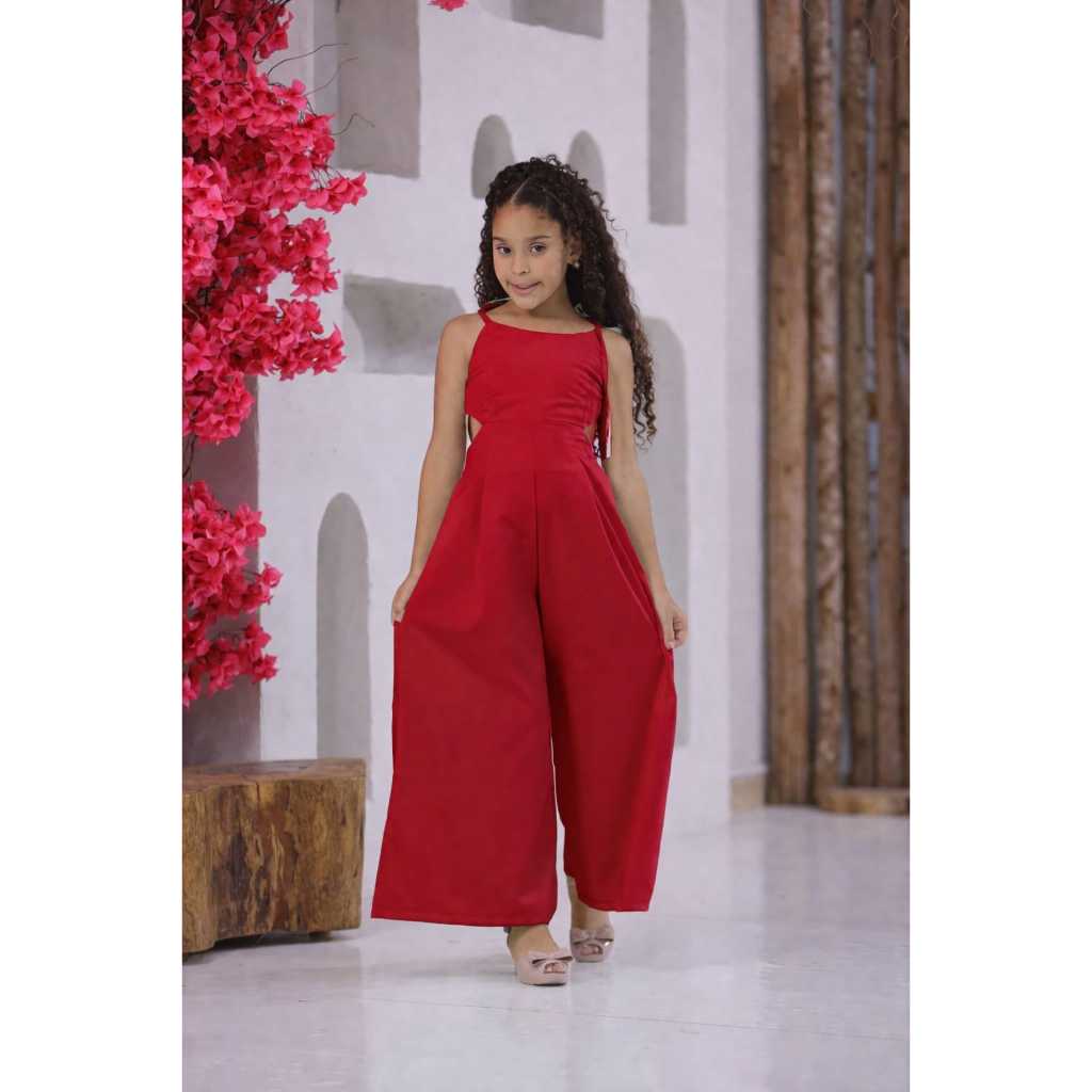 Macacão Longo Liso Infantil Feminino Pantalona Elegante Festa Aniversário Menina 4 ao 16 anos