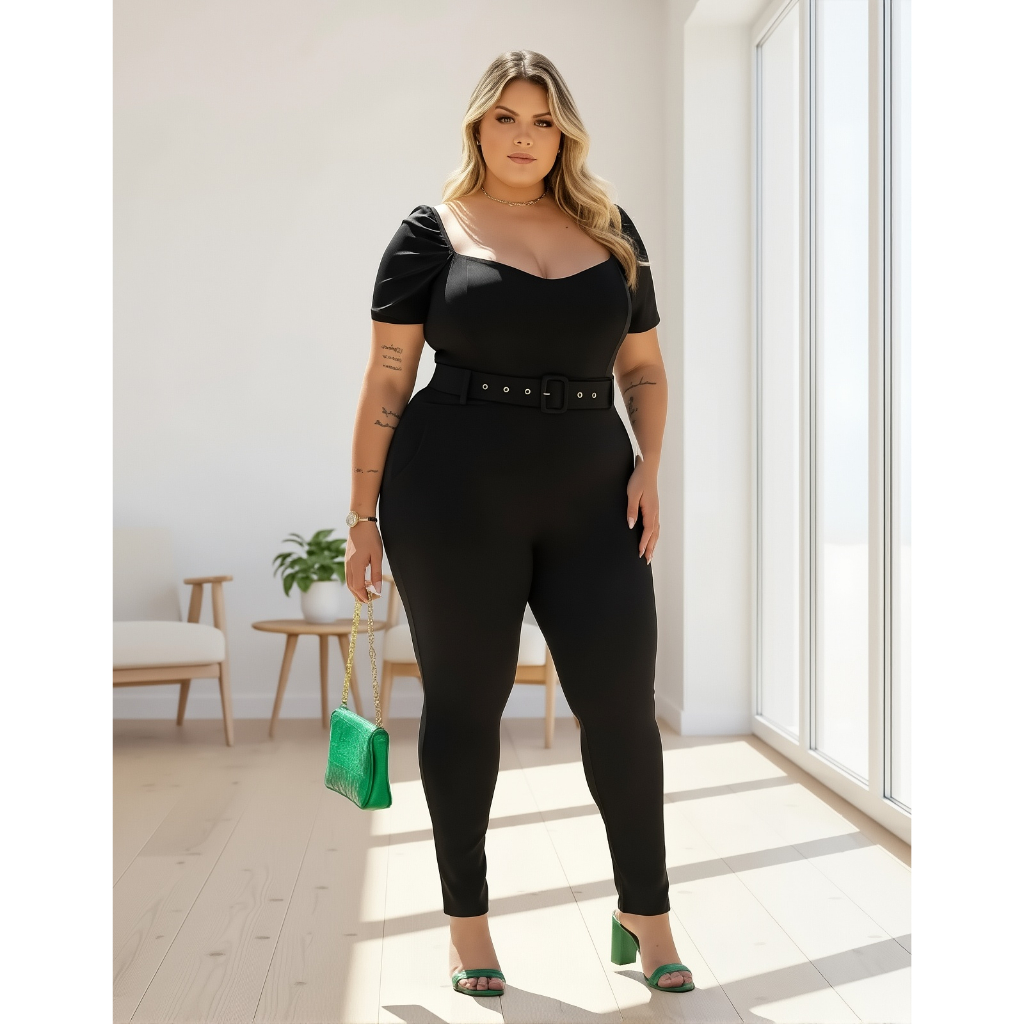 Macacão Luxo confeccionado em crepe de malha de alta qualidade, com caimento perfeito que valoriza as curvas. Possui decote elegante, modelagem confortável e acompanha cinto que realça a cintura. Ideal para ocasiões especiais ou para compor looks sofisticados. Tamanho único veste do 46 ao 52.