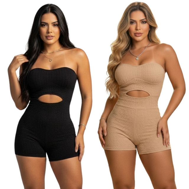 Macacão Macaquinho Curto Com Bojo Tomara que Cai com Abertura na Frente Tecido BUBBLE blogueira Jardineira