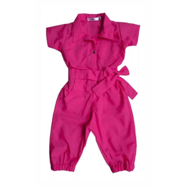 Macacão Macaquinho Infantil Longo Menina Blogueirinha Estilosa Festas Rosa
