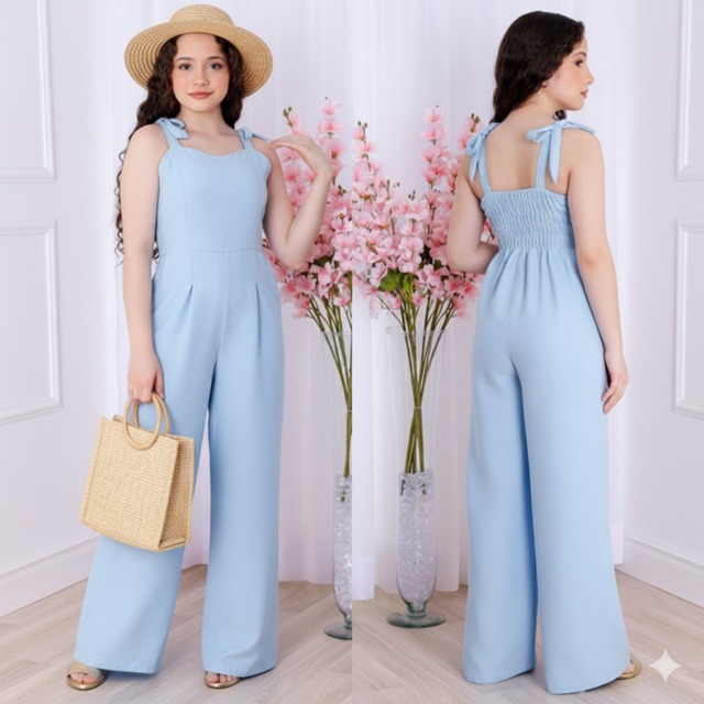 Macacão Macaquinho Juvenil costas com laxtex calça pantalona 12,14 e 16