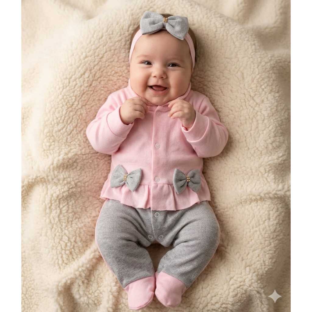 Descrição do Produto O Macacão é a peça coringa que não pode faltar no enxoval da sua bebê, além de ser muito utilizado é um item tradicional que pode ser usado em todas ocasiões, esse lindo modelo acompanha uma faixa de cabelo para levar ainda mais charme e elegância para sua princesa. Confeccionado em malha canelada que possui toque macio para o contato com a pele sensível da bebê. Esse modelinho é um encanto que irá proteger e aquecer ainda mais sua bebê. Itens Inclusos 01 Macacão Manga Longa 01 Faixa de Cabelo Composição Tecido: Malha Canelada 100% Algodão SUGESTÃO DE USO 0 a 1,5 mês (RN) Até 4 kg 0 a 3 meses (P) Até 5 kg 3 a 6 meses (M) Até 7 kg