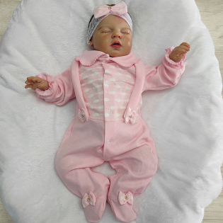 Macacão Manga Longa Doce Sonho com Suspensório Bebê Menina Manu com Faixinha de Cabelo