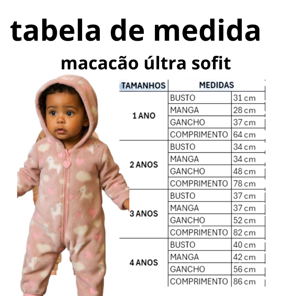 Macacão Infantil Microsoft com Zíper e Touca – 1 a 3 anos (Unissex) Proteção, conforto e praticidade em uma só peça! Confeccionado em microsoft , premium este macacão ,e extremamente macio,quentinho e repiravel - ideal para os dias frios. O tecido não forma bolinhas, seca rápido e tem alta durabilidade, mesmo após várias lavagens. Conta com zíper frontal que desce ate a perna para facilita na hora de vestir, e troca. Touca integrada para manter a cabeça protegida e punhos com ajuste que ajudam a manter o movimento da criança Disponível nos tamanhos de 1 a 3 anos, é um modelo unissex versátil e perfeito para brincar, passear ou dormir com conforto.