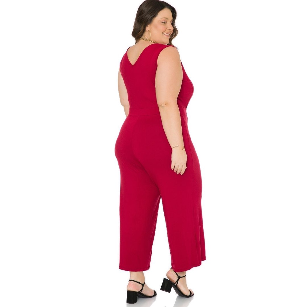 Macacão Pantacourt decote V Plus Size tamanho grande confortável e elegante do G ao g4 103742