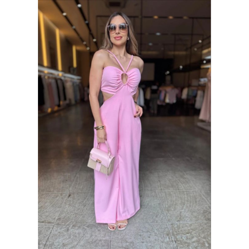 Tamanho: único / veste do 38 ao42 Tecido: Sensoriale Marrant tecido premium de alta qualidade, conhecido pela sua composição 92% viscose e 8%poliéter, toque macio e excelente caimento Tem bolso e bojo Medidas: comprimento 134 cm / busto 68cm a 100cm / cintura 50cm a 82cm / quadril 78cm a104cm Macacão com decote profundo, recortes laterais que adicionam um toque moderno e sofisticado , tecido fluido e leve ideal para o calor Para quem preferir sem bojo ou um comprimento maior mandar mensagem para fazer o pedido