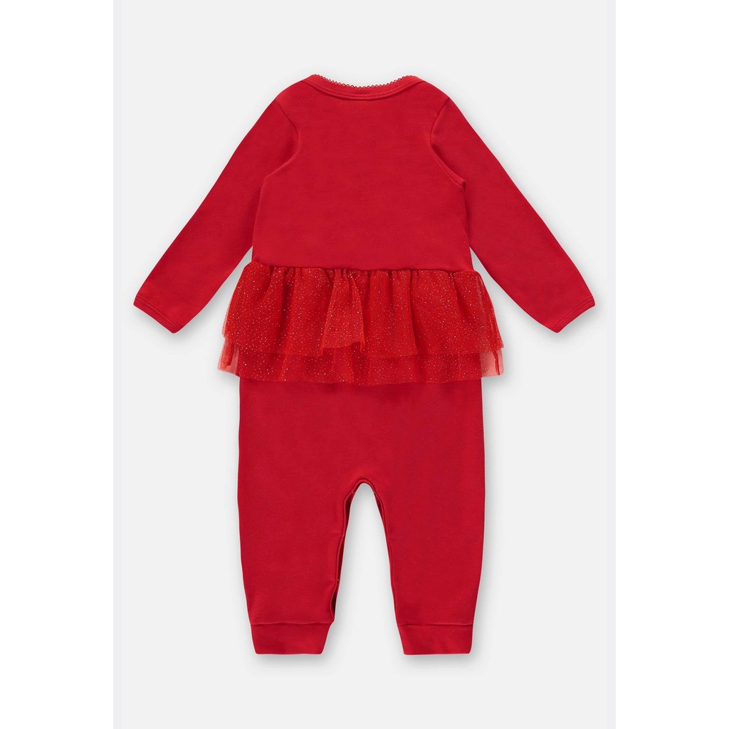 Macacão para bebê menina confeccionado em suedine (algodão), garantindo conforto e maciez para a pele sensível da bebê. A peça possui laço decorativo na gola, ombros com picueta crochê, bordado e bordado 3D com temática natalina no peito, saia franzida em poliéster com glitter, punhos, e abertura por botões de pressão entre as pernas, que facilita na hora de vestir e trocar a bebê.Tecido: Macacão: Suedine / Saia: Poliéster com GlitterComposição: 100% algodão / Tule: 100% poliésterModelagem: AmplaComprimento Mangas: LongaComprimento: LongoForro: NãoCintura: MédiaDecote: Redondo