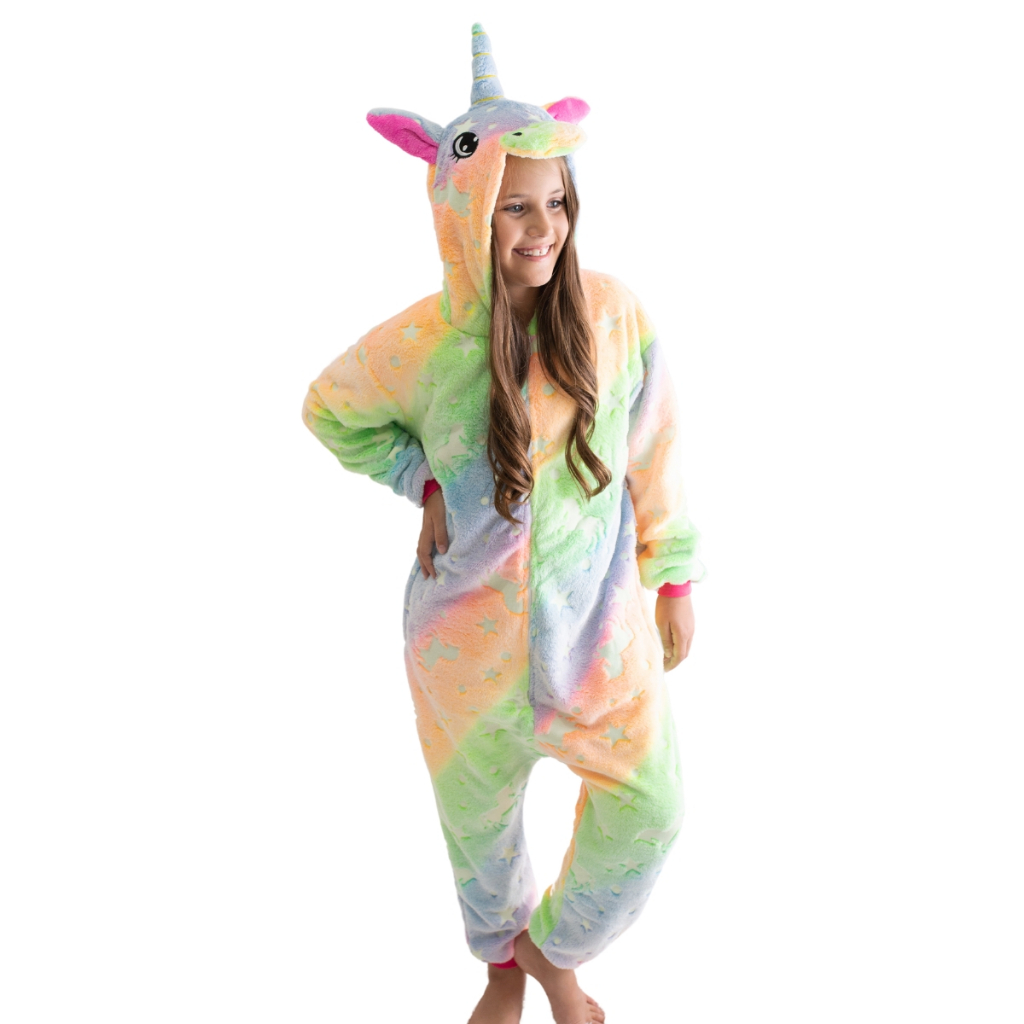 Macacão Pijama Infantil Unicórnio Menina Kigurumi Brilha no escuro - Envio Imediato