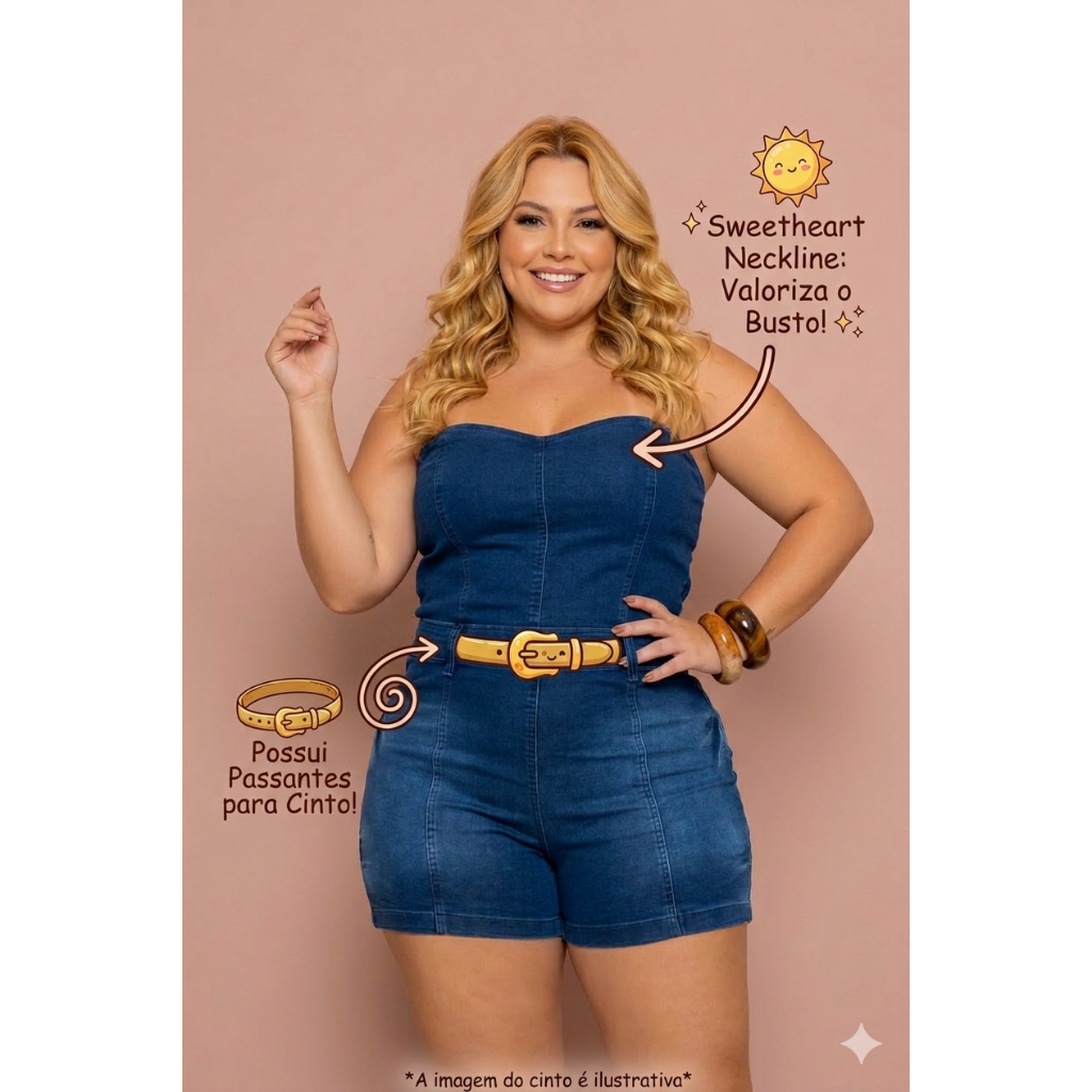 ATENÇÃO!!! RECOMENDAMOS, A NÃO PEDIR O TAMANHO MAIOR DO QUE COSTUMA USAR, A CONFECÇÃO DELE É GRANDE. PEDIR O TAMANHO QUE REALMENTE USA!!!! Descubra o charme e o conforto do nosso macacão curto em jeans com elastano, especialmente desenhado no elegante modelo tomara que caia. Disponível em tamanhos plus size, este macacão combina estilo e praticidade com um zíper discreto nas costas, bolsos funcionais na parte de trás e passantes para cinto. Ele é a escolha perfeita para realçar sua silhueta com elegância e versatilidade. Não perca a oportunidade de ter essa peça indispensável em seu guarda-roupa! Composição: 73% Algodão 24% Poliéster 03% Elastano Medidas do Produto (Medidas tiradas sem usar o elastano, ele ainda estica uns 10 cm em cada medida). Tamanho 46 Busto: 96 cm Cintura: 92 cm Quadril: 110 cm Tamanho 48 Busto: 100 cm Cintura: 96 cm Quadril: 114 cm Tamanho 50 Busto: 104 cm Cintura: 100 cm Quadril: 118 cm Tamanho 52 Busto: 108 cm Cintura: 104 cm Quadril: 122 cm Tamanho 54 Busto: 112 cm Cintura: 108 cm Quadril: 126 cm Tamanho 56 Busto: 116 cm Cintura: 112 cm Quadril: 130 cm PRODUTOS ORIGINAIS E TOTALMENTE CONFIÁVEIS, PORQUE SÃO FABRICADOS POR UMA DAS EMPRESAS MAIS BEM COCEITUADAS, NA FABRICAÇÃO DE ROUPAS PLUS SIZE, QUE JÁ ATUA A ANOS NO MERCADO! SOMOS UMA EMPRESA QUE PREZA PELA QUALIDADE E ESTILO E CONFIANÇA, VENDEMOS PRODUTOS CONFIAVEIS EXATAMENTE IGUAL A FOTO DO ANÚNCIO! ********** TODOS OS NOSSOS PRODUTOS ACOMPANHAM NOTA FISCAL ELETRÔNICA. Bem-vindo(a) à Drica Modas! Desde 2014, estamos comprometidos em oferecer o melhor da moda plus size. Somos uma loja virtual e trabalhamos somente com entregas, garantindo que você receba o seu produto no conforto do seu lar.