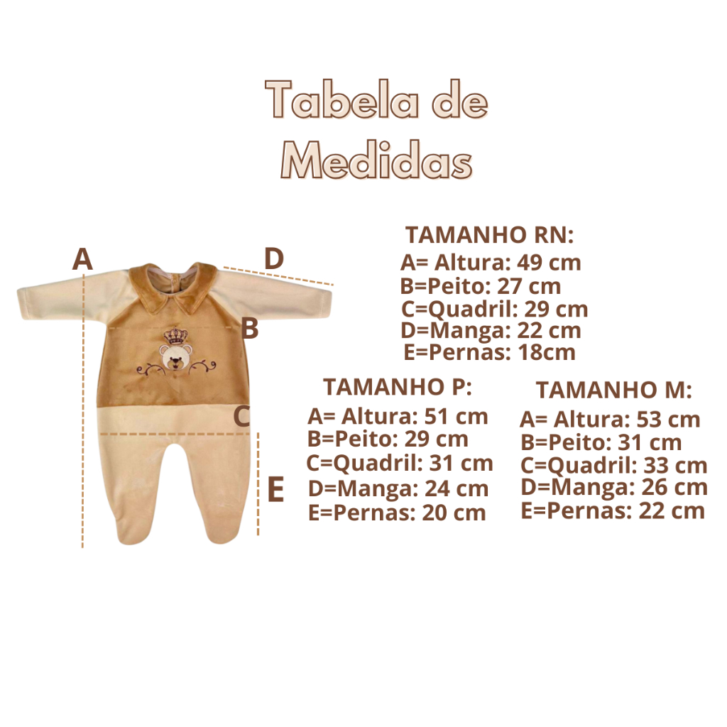 Olá, sejam bem vindos á nossa loja! MEDIDAS: Tamanho RN: 49cm Altura x 27cm Peito x 29cm Quadril x 22cm Manga x 18cm Pernas; Tamanho P: 51cm Altura x 29cm Peito x 31cm Quadril x 24cm Manga x 20cm Pernas; Tamanho M: 53cm Altura x 31cm Peito x 33cm Quadril x 26cm Manga x 22cm Pernas. COMPOSIÇÃO: Plush 60% Algodão + 40% poliéster. CONTÉM NO ANÚNCIO: 01 Macacão em Plush O macacão infantil em plush foi desenvolvido para oferecer conforto, proteção e muito aconchego ao bebê nos dias mais frios. Confeccionado em tecido plush 100% algodão, possui toque macio e delicado, ideal para a pele sensível do recém-nascido, mantendo o pequeno sempre quentinho e confortável ao longo do dia. Com design encantador e fechamento prático, conta com botões de pressão em latão pintado, que não enferrujam e garantem maior durabilidade, além de facilitar na hora de vestir e trocar. No tamanho P, é uma peça de excelente acabamento, própria para roupas de bebê e indicada especialmente para o inverno, unindo qualidade, praticidade e charme para o uso diário ou momentos especiais. (Não é bordado) Qualquer dúvida estamos á disposição, boas compras!