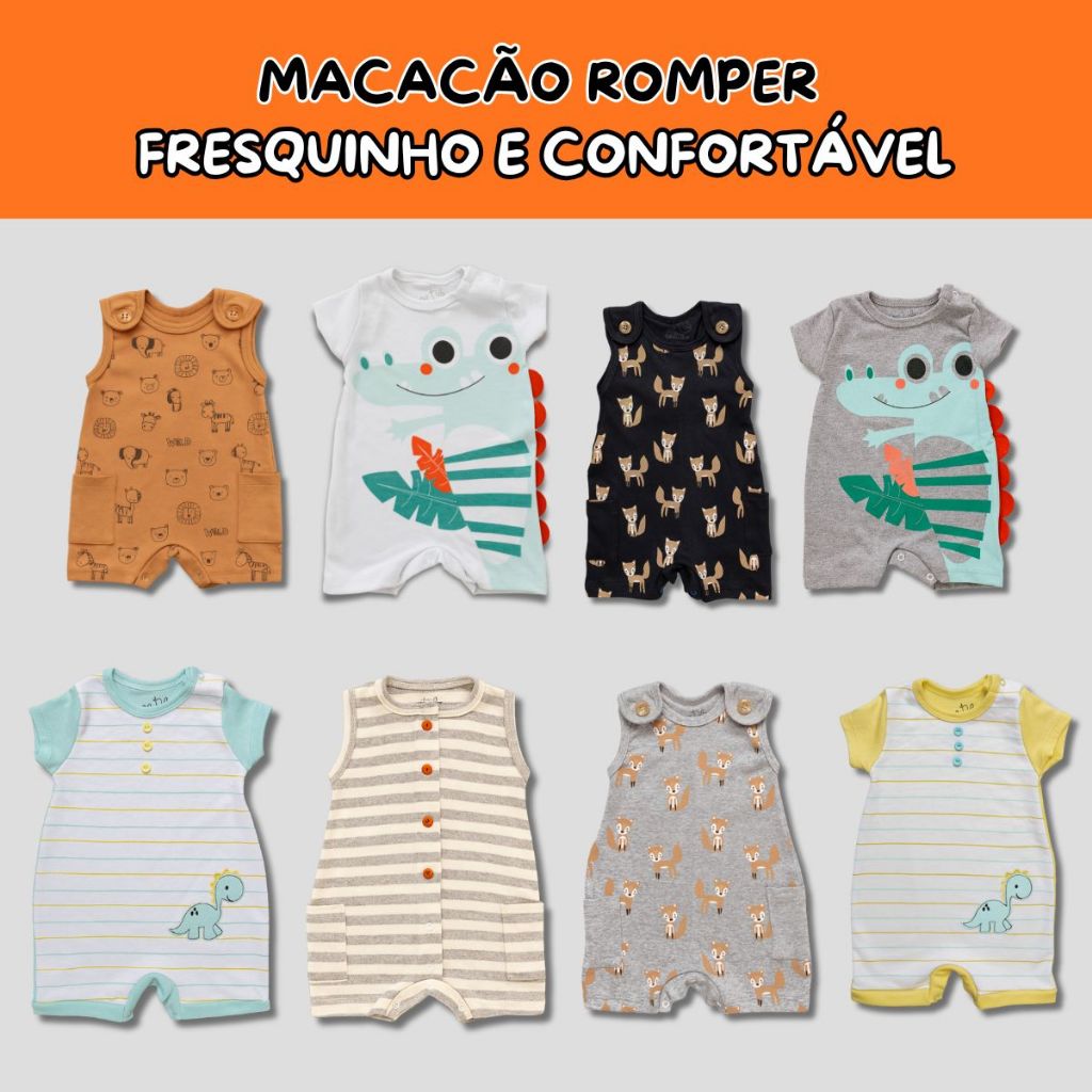 | Macacão Romper Bebê Menino Verão Suedine Leve e Fresco MPROMPER-MEN... este produto | R$ 57,90 | 36% | 5.0/5 | — |