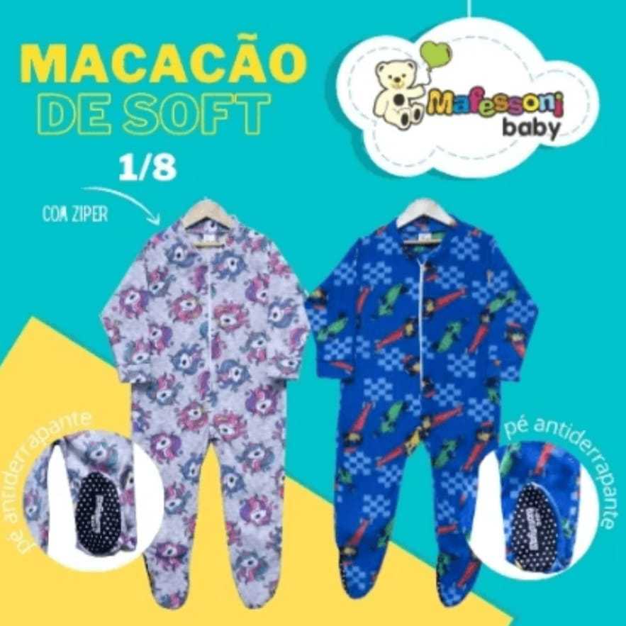 ***CONFIRA AS MEDIDAS NAS FOTOS DO ANÚNCIO*** ••• Cores e Estampas enviadas de acordo com a disponibilidade do estoque respeitando o gênero escolhido.••• Macacão Soft com fechamento em zíper, contando com pé fechado antiderrapante. Super quentinho, confortável e macio. Lindas estampas e super modernas confeccionado com qualidade, conforto, estilo e muito amor. Inovação é o que buscamos, são perfeitos para os dias mais frios, com numeração do 1 ao 8. IMPORTANTE: Lavar separado e secar à sombra. Composição: 100% poliéster. *** DÚVIDAS FREQUENTES: Posso escolher as cores/estampas? R: Não. Infelizmente devido à alta rotatividade não conseguimos abrir para escolha, enviamos sortidas podendo ser com as estampas/cores iguais ou diferentes das fotos do anúncio. Se eu quiser comprar novamente, virá com a estampa/cor igual? R: Não. Caso volte a comprar na loja nos mande a foto da estampa/cor que recebeu pelo chat, que enviaremos diferente. Se eu comprar mais de uma unidade, vai vir repetido? R: Não. Nas compras de mais de uma unidade enviamos cores/estampas diferentes umas das outras. Caso queira estampas iguais, nos chame no chat. *** ANTES DE EFETUAR A COMPRA LER ATENTAMENTE TODAS AS INFORMAÇÕES E ENVIAR UMA MENSAGEM VIA CHAT CASO HAJA ALGUMA DUVIDA. SERÁ UM PRAZER ATENDÊ-LO.
