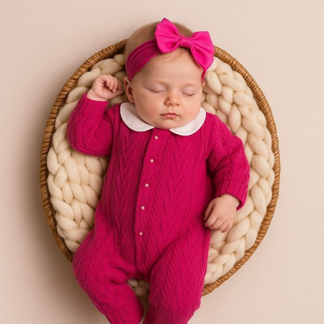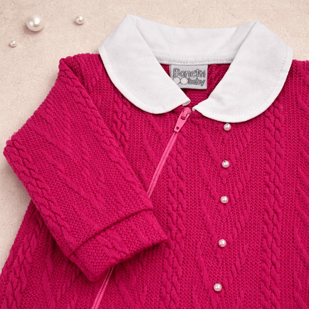 Macacão Tricô Recém Nascido Bebê Feminino – Rosa Pink com Gola Branca Esse macacão é puro charme e conforto para a sua pequena! Feito em tricô com ponto trabalhado em relevo, ele traz um visual sofisticado e aconchegante. A cor rosa pink vibrante combina perfeitamente com a delicadeza da gola branca em tecido, proporcionando um contraste elegante e encantador. 🧶 Destaques do produto: ✔️ Tricô macio com detalhes em alto relevo ✔️ Gola branca clássica e delicada ✔️ Zíper frontal que facilitam na hora de vestir ✔️ Modelagem confortável com pezinho fechado ✔️ Ideal para saídas de maternidade, ensaios fotográficos e ocasiões especiais ✨ Perfeito para manter o bebê aquecido com estilo nos dias mais fresquinhos! 🧵Material: Tricot Treece 🎨Opções de cores: Pink 📏Tabela de Medidas (Altura x Largura x Manga): ✨RN: 40cm x 21cm x 16cm