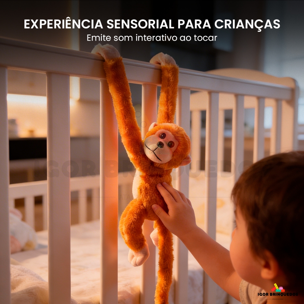 Macaco de Pelúcia com Velcro de Pendurar Brinquedo Decorativo Interativo Infantil Com Som e Luz