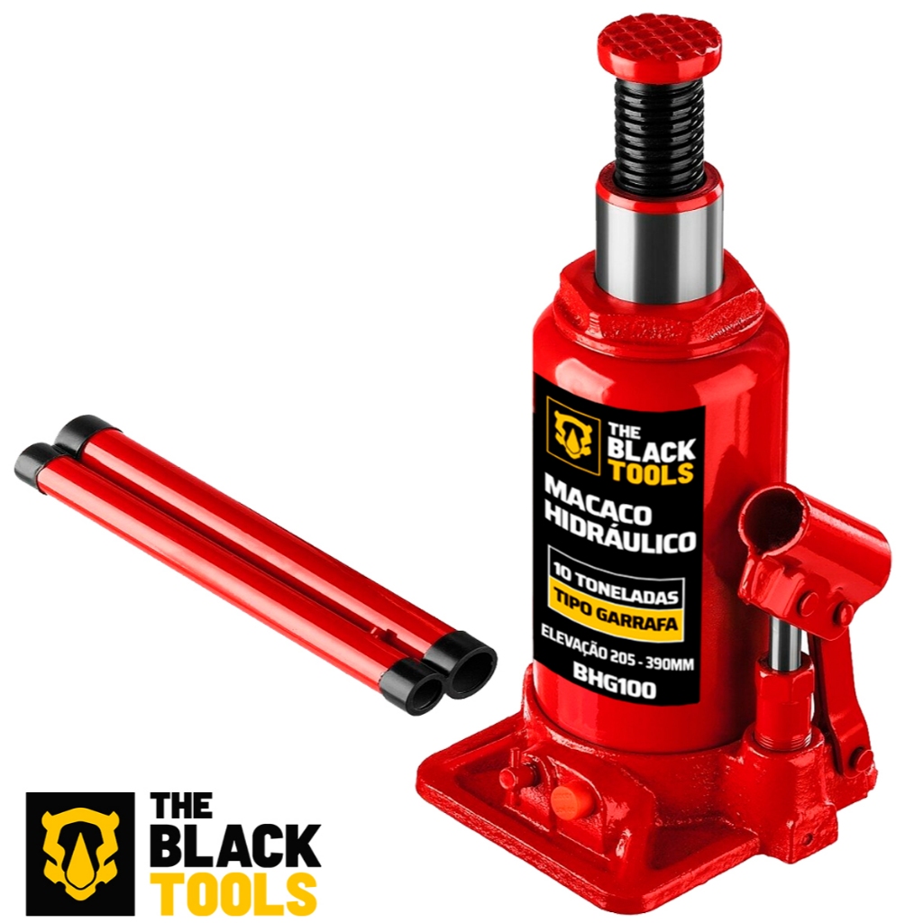 Macaco Hidraulico Tipo Garrafa 10 Toneladas Elevação Veículos Caminhão Bhg1000 The Black Tools