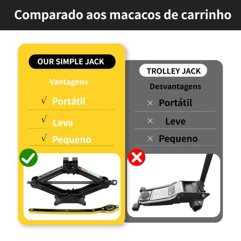 Macaco Mecânico Sanfona Universal 1500kg para Carros Passeio com Chave Catraca Aço Reforçado