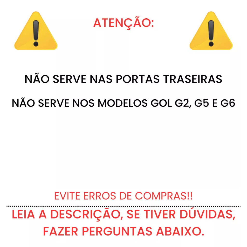 Informações Técnicas: - Maçaneta Porta Gol - Gol G3 G4 1999 Até 2014 - Parati G3 G4 1999 Até 2012 - Saveiro G3 G4 2000 Até 2008 - Com Chave - Dianteira - 4 Portas - Lado Direito - Lado Esquerdo - Cor Preta - Produto Novo - Pronta Entrega - Envio Imediato Conteúdo Da Embalagem: 1 Maçaneta Porta Dianteira Características: - Garantia De 90 Dias. - Qualquer situação pode nos chamar, que resolveremos imediatamente. - Material Resistente - Estrutura Reforçada - Excelente Peça De Reparo - Garantia De Durabilidade - Com excelente qualidade e alta tecnologia o produto foi desenvolvido, especialmente para a reposição da peça original danificada ou gasta. Observação: - Todas as informações divulgadas são de responsabilidade do Fabricante/Fornecedor; - Imagens meramente ilustrativas, consulte nosso atendimento para mais detalhes. - Procure sempre um profissional especializado para evitar quaisquer transtornos de instalação.