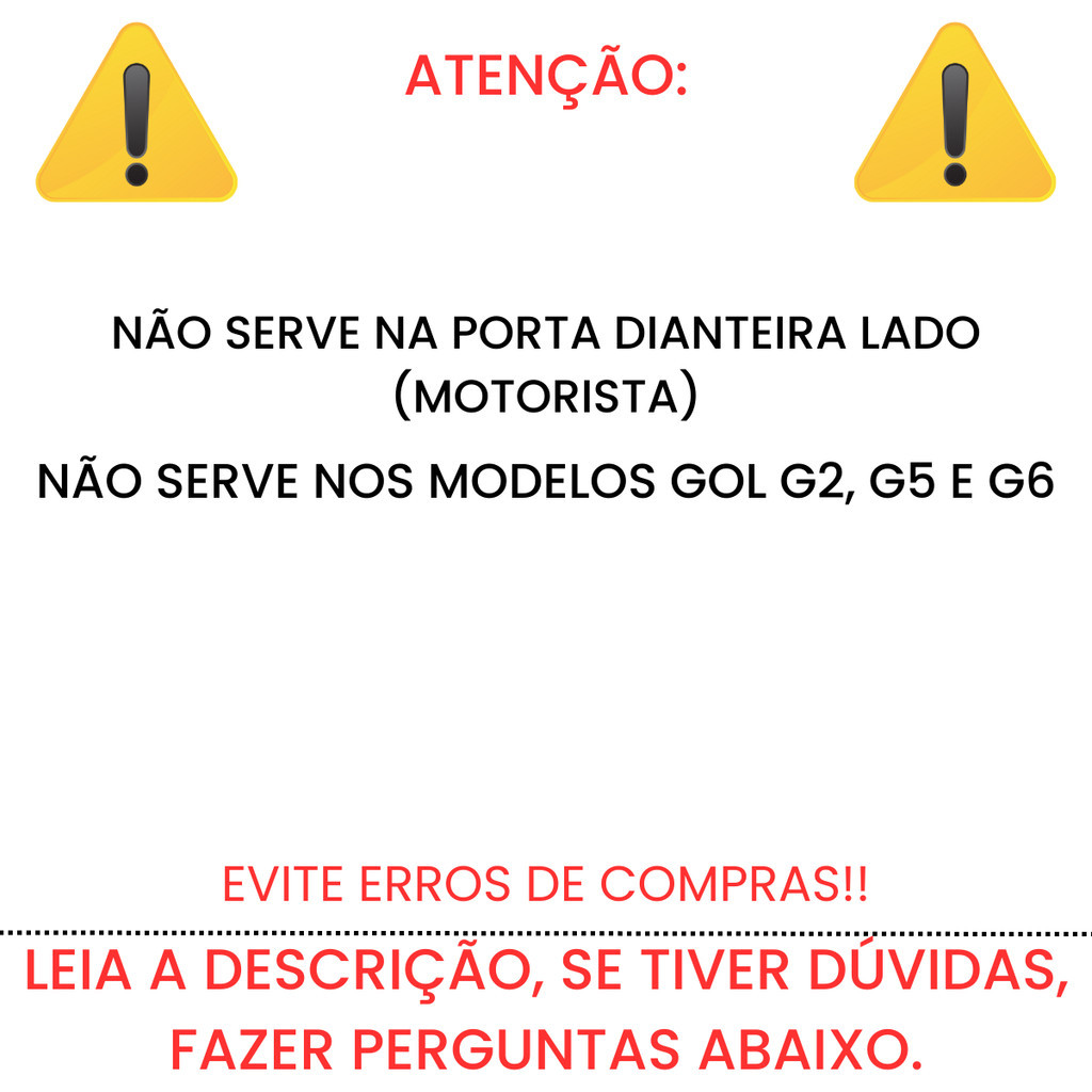 Informações Técnicas: - Maçaneta Porta Gol G3 - Gol G3 1999 Até 2005 - Gol G4 2005 Até 2014 - Parati G3 1999 Até 2005 - Parati G4 2005 Até 2014 - 4 Portas - Dianteira - Traseira - Lado Esquerdo - Lado Direito - Sem Chave - Preta - Produto Novo - Pronta Entrega - Envio Imediato Conteúdo Da Embalagem: 1 Maçaneta Porta Sem Chave Características: - Garantia De 90 Dias. - Qualquer situação pode nos chamar, que resolveremos imediatamente. - Material Resistente - Estrutura Reforçada - Excelente Peça De Reparo - Garantia De Durabilidade - Com excelente qualidade e alta tecnologia o produto foi desenvolvido, especialmente para a reposição da peça original danificada ou gasta. Observação: - Todas as informações divulgadas são de responsabilidade do Fabricante Fornecedor; - Imagens meramente ilustrativas, consulte nosso atendimento para mais detalhes. - Procure sempre um profissional especializado para evitar quaisquer transtornos de instalação.
