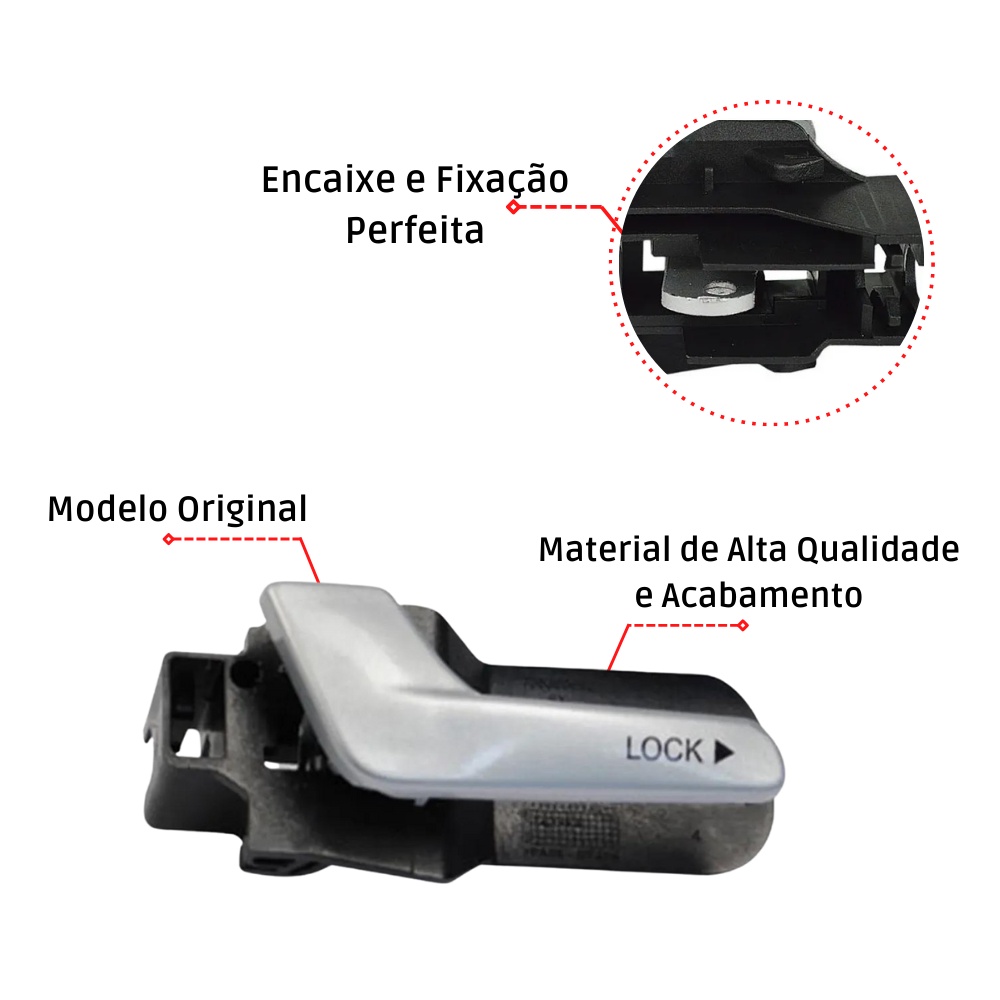 Maçaneta Interna Porta Esquerda Dianteira Palio Siena Strada - Cor: Prata