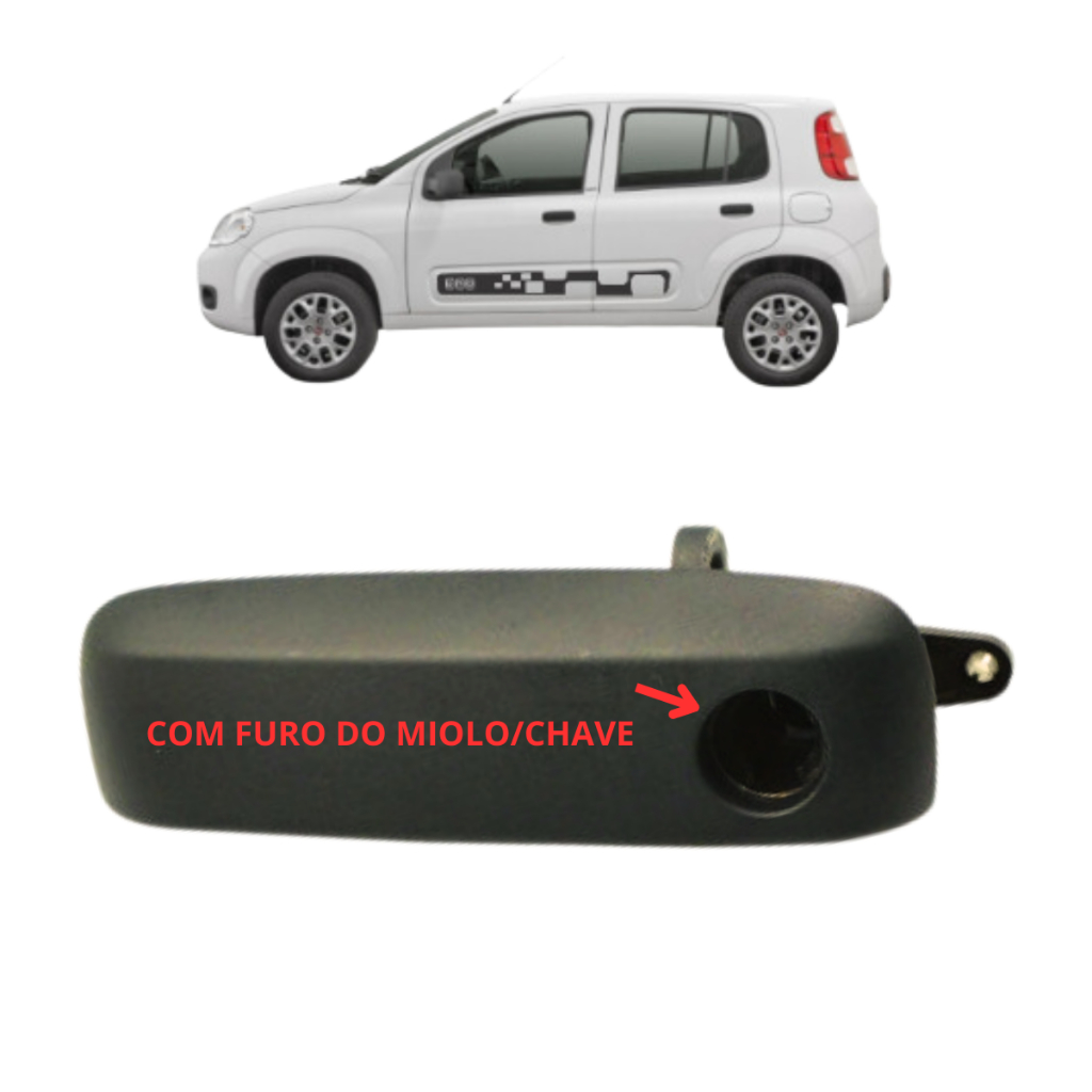 MAÇANETA EXTERNA COM FURO PARA CHAVE - ESCOLHA O LADO.(ESQUERDO MOTORISTA) OU (DIREITO PASSAGEIRO) . COMPATÍVEL COM OS SEGUINTES VEÍCULOS: . UNO G2 VIVACE/WAY - 2010 ATÉ 2018 . PRODUTO DE PRIMEIRA LINHA, FABRICAÇÃO NACIONAL. . GARANTIA DE 3 MESES