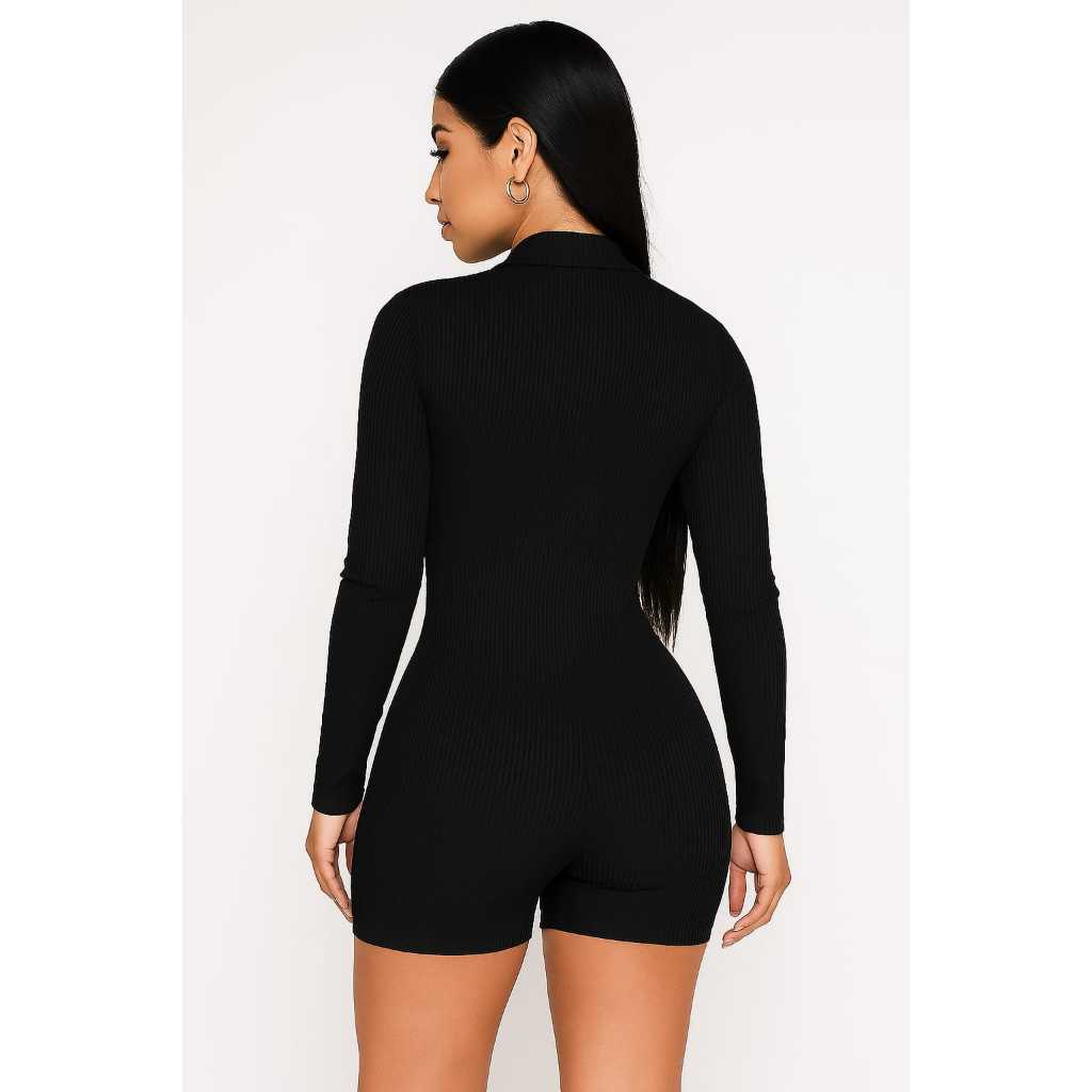 Macaquinho Canelado Feminino Fitness Moda Casual Manga Longa Coladinho Modela o Corpo Com Zíper Reforçado
