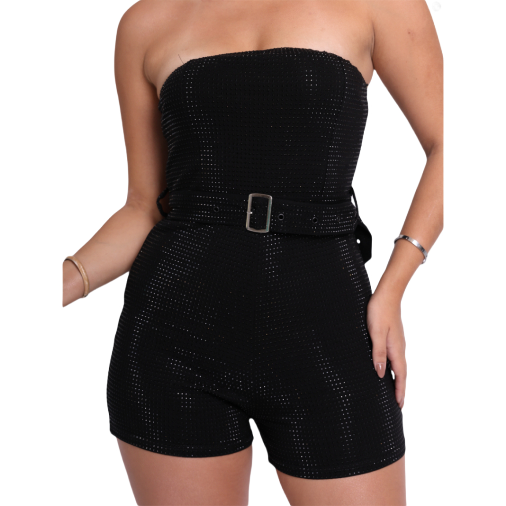 Macaquinho Curto com Strass Brilhante + Bodycon Ajuste Perfeito! ✨ Para Festas, Casamentos e Noites Especiais T2404-151