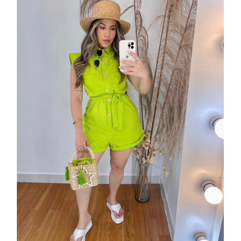 Macaquinho Curto Tecido linho Premium laranja, pink, verde lima, preto, bege, azul, marrom