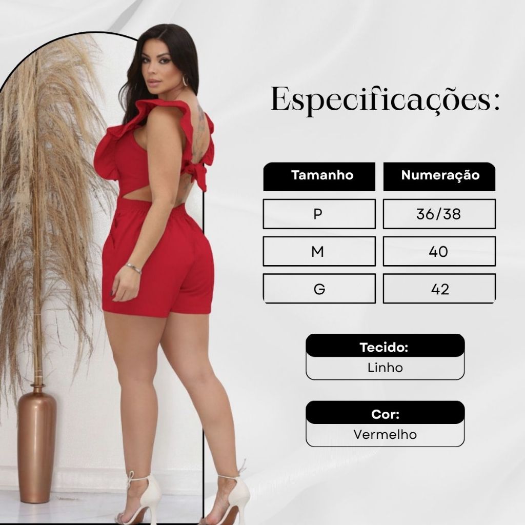 Está procurando um macaquinho que una leveza, praticidade e estilo feminino para os dias quentes? Características do produto – Material: linho fresco e leve – Modelo: macaquinho curto com alças e babados – Detalhe: costas nuas que agregam charme e conforto – Funcionalidade: bolsos práticos para maior conveniência – Temporada de lançamento: primavera/verão, ideal para dias quentes Por que escolher este produto? – Produz frescor e conforto com tecido natural e arejado – Visual delicado com babados e recorte que valoriza o ombro – Praticidade extra com bolsos sem perder o estilo – Versátil para passeios diurnos ou celebrações informais – Combina elegância simples com conforto moderno Dicas de uso – Combine com sandálias de tiras para um visual leve e feminino – Use chapéu de palha ou acessórios delicados para complementar o look de verão – Prefira lavagem à mão ou ciclo delicado e secagem à sombra para preservar o linho – Armazene pendurado ou dobrado sem apertar para manter o caimento natural Perguntas frequentes (FAQs) – Esse macaquinho possui bolsos? Sim, inclui bolsos práticos sem comprometer a modelagem elegante – O tecido é confortável no calor? Sim, o linho é leve e ideal para altas temperaturas, mantendo o conforto – Qual a modelagem deste macaquinho? O modelo é curto, soltinho e fresco, perfeito para o verão e ocasiões informais Adote este macaquinho de linho com babados e costas nuas e brilhe com conforto e charme nos seus dias ensolarados!