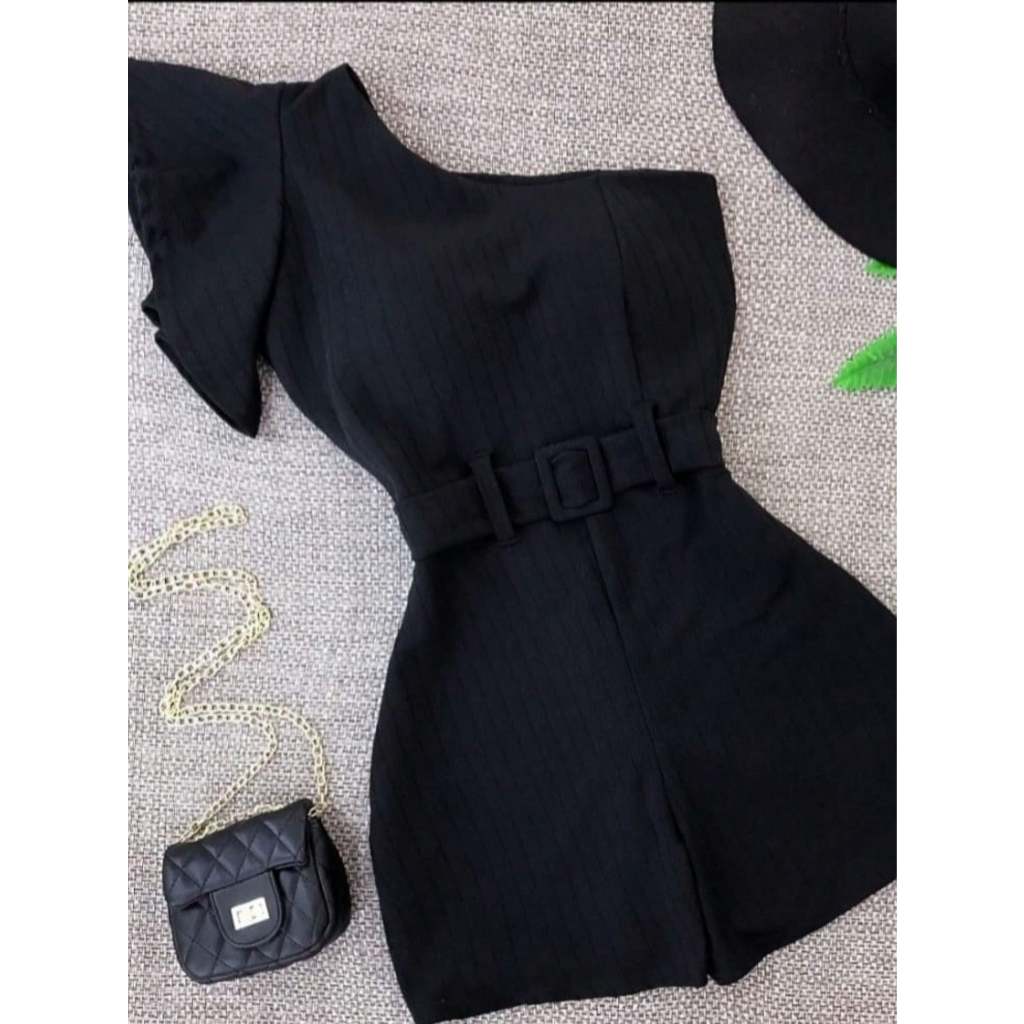 macaquinho feminino elegante com cinto e bojo manga nula elegante