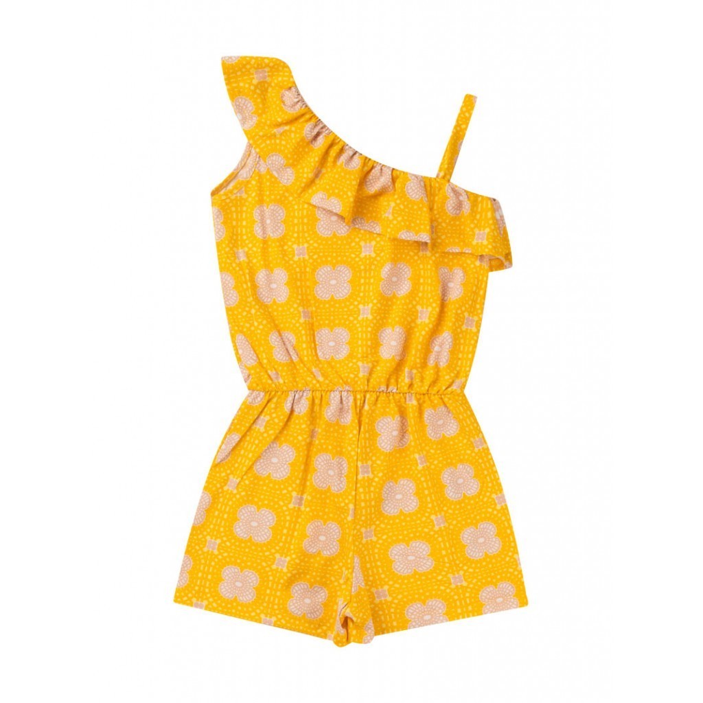 Descrição: Macaquinho Feminino Infantil Ombro Único Macaquinho lindo em meia malha 50% algodão e 50% poliéster. Possui cor amarela com estampa rotativa de flores, elástio na cintura e ombro único com babados e alcinha,. Tudo pensado e produzido com muito amor e carinho. Selecionamos os melhores materiais para crianças que desejam ser destaque por onde passam! Guia de Tamanhos Como medir a criança? Utilizando uma fita métrica, envolva as regiões a serem medidas. Busto: Enrole a fita métrica em torno do corpo, na linha do peito. Comprimento: Comece pelo topo do ombro e meça até chegar no comprimento desejado. Quando for calça, short ou saia, comece medindo na linha da cintura. Cintura: Enrole a fita métrica em torno da cintura, sem apertar. As medidas da tabela abaixo são referentes á parte frontal da peça, então busto e cintura você deve multiplicar por 2. A tabela pode sofrer alterações de 1 á 2 cm para mais ou menos, leve isso em conta na hora de selecionar o tamanho adequado. Características: - Tabela de Medidas: Tabela de Medida Macaquinho: Tamanho | Busto | Comprimento 2 | 24CM | 48CM 3 | 26CM | 51CM 4 | 29CM | 55CM 6 | 33CM | 59CM 8 | 33CM | 63CM 10 | 35CM | 66CM 12 | 39CM | 69CM - Garantia: 1 Mês - Evento: Não - Tecido Peça: Meia Malha - Composição: 50% Algodão e 50% Poliéster - Estação: Verão - Faixa Etária: 1 à 12 anos - Gênero: Feminino