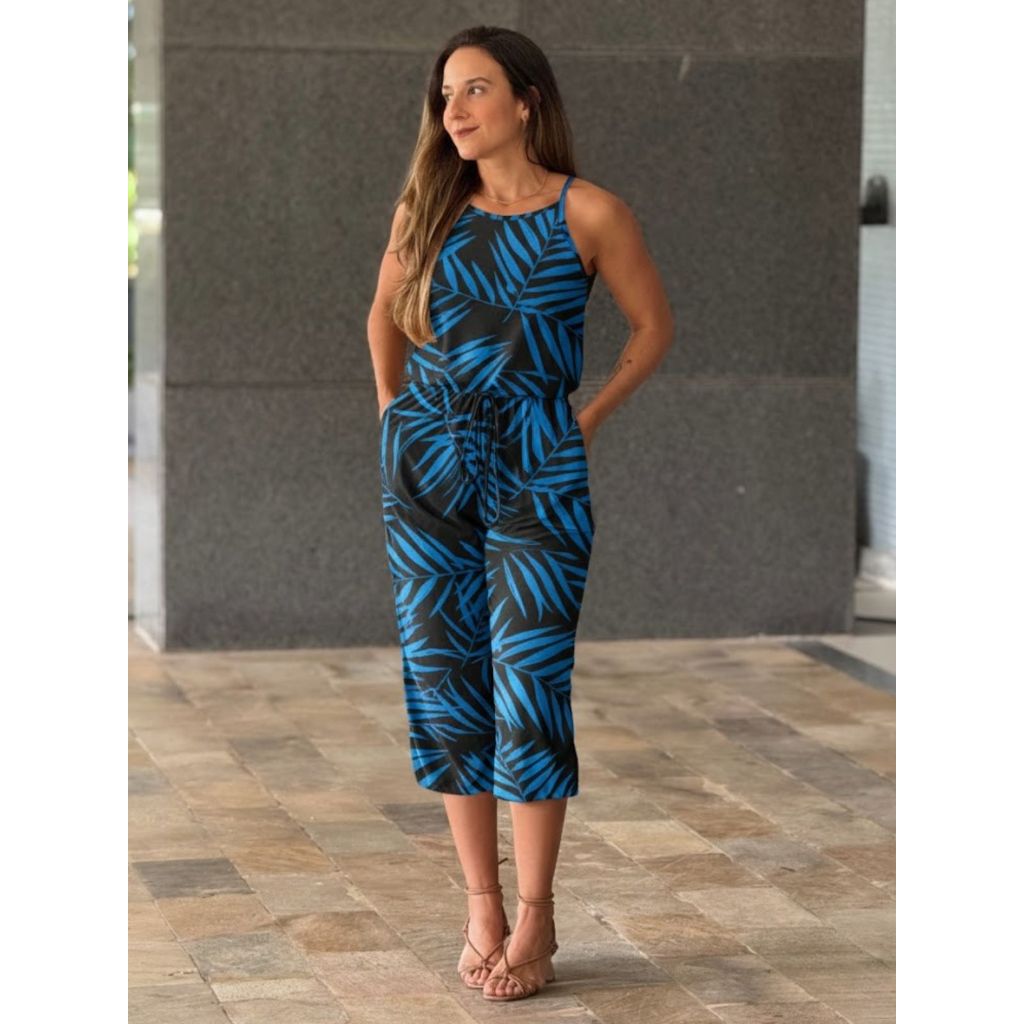 Macaquinho Feminino Liganete Zinze Cintura Alta Com Amarração na Cintura Alça Fresco Verão Tendência