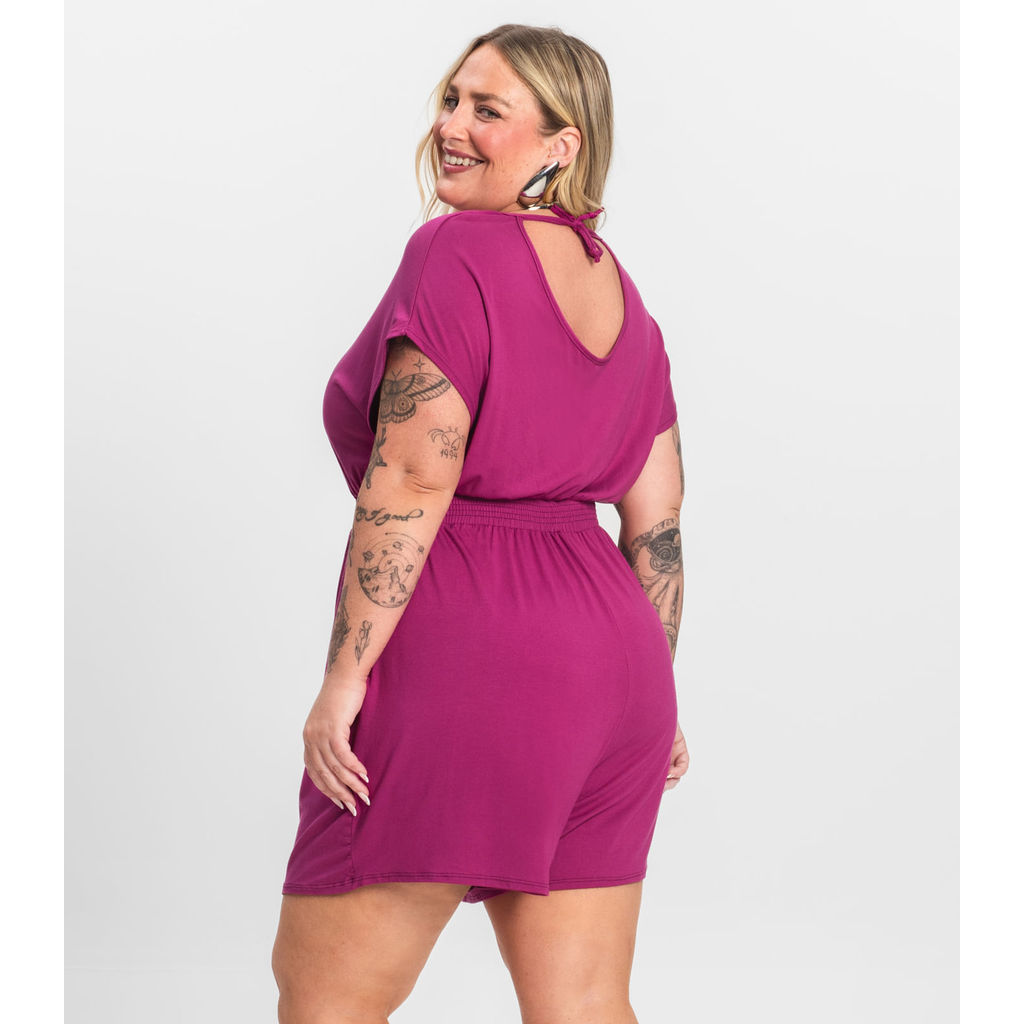 Macaquinho Feminino Infinita Cor, confeccionado em Malha Visco Premiere, garantindo conforto e leveza. Conta com decote redondo com friso, manga curta sem cava e cós com elástico na cintura para melhor ajuste ao corpo. Nas costas, possui decote redondo com amarração em friso, agregando charme à peça. Com comprimento acima do joelho, é ideal para compor looks casuais e modernos com praticidade.