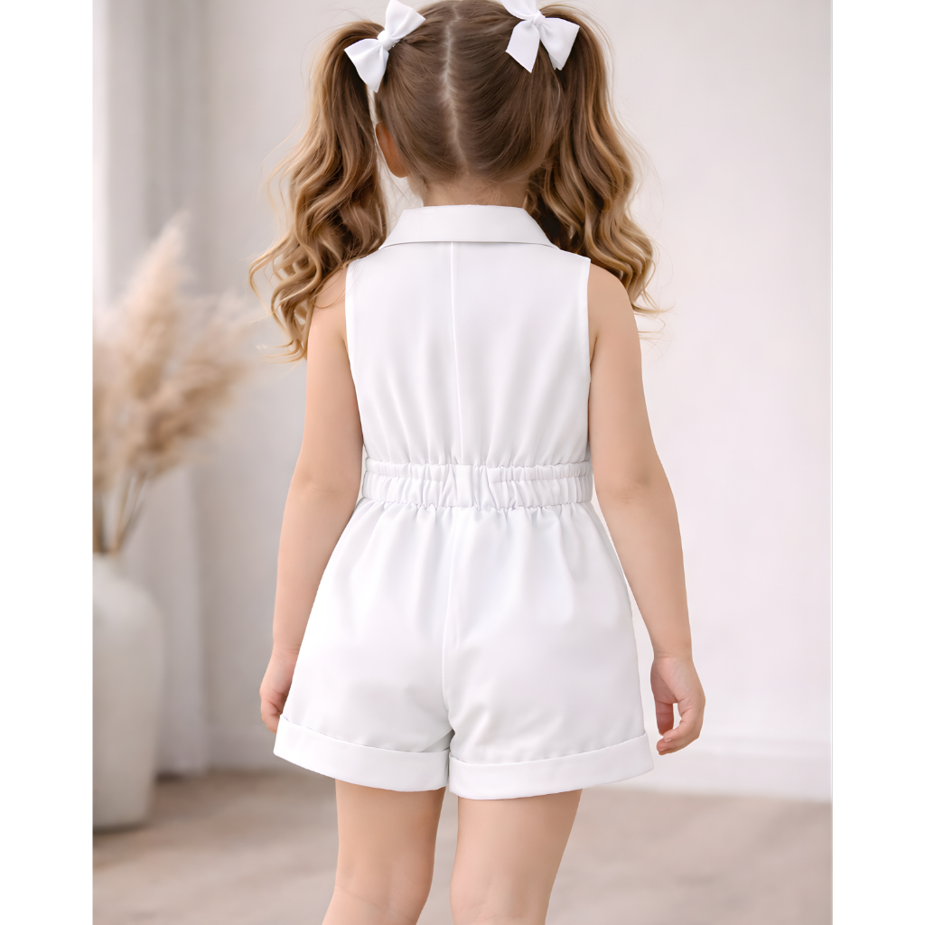 Macaquinho Infantil com Gola e Laço – Diverças cores Um modelo elegante, moderno e extremamente confortável para meninas estilosas. O macaquinho possui gola estilo camisa, 3 botões frontais e cinto faixa com laço fixo, trazendo um visual sofisticado e delicado ao mesmo tempo. Ideal para: • Passeios • Festas • Fotos • Aniversários • Look casual chic Modelagem confortável que permite liberdade de movimento. Diferenciais do Produto Gola social estruturada ️ 3 botões encapados frontais ️ Cinto faixa com laço ️ Modelagem soltinha e confortável ️ Tecido macio e encorpado ️ Acabamento reforçado Informações Técnicas • Modelo: Macaquinho Infantil Feminino cintura com elastico • Gola: Tradicional estilo camisa • Botões: 3 botões frontais encapados • Fechamento: Botões frontais • Cinto: Faixa fixa com laço • Composição: Alfaiataria