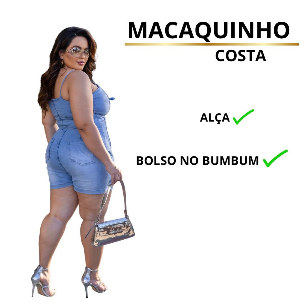 | Macaquinho Jeans Feminino Plus Size com lycra Alça e Amarração no B... este produto | R$ 72,75 | 3% | 4.9/5 | 13 |