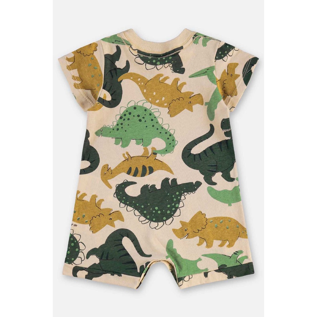 Macaquinho para bebê menino confeccionado em meia malha de algodão, com estampa de dinossauros. Possui decote arredondado em ribana com abertura por botões de pressão, punhos nas cavas das pernas e abertura entrepernas também com botões de pressão, facilitando a troca. Ideal para os dias de calor, é leve, confortável e prático para o dia a dia.Tecido: Macaquinho: Meia Malha (Algodão)Composição: 100% AlgodãoModelagem: JustaComprimento Mangas: CurtaComprimento: CurtoForro: NãoCintura: MédiaDecote/Gola: RedondoFechamento: Botões de pressão