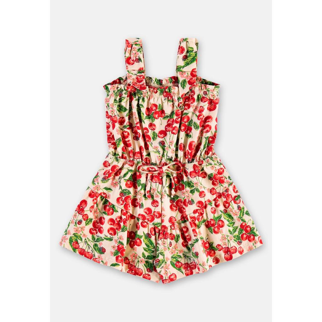 Macaquinho feminino infantil feito em cotton, combinação de algodão com elastano, ideal para os dias mais quentes. Tem alças largas com laços fixos, recortes franzidos e elástico na cintura para ajuste perfeito. Sua estampa de cerejas acrescenta charme e alegria, transformando-o em uma peça especial. Uma escolha leve e prática para o verão, unindo estilo e conforto.Tecido: Macaquinho: Cotton (Algodão e Elastano)Composição: 96%algodão 4%elastanoModelagem: AmplaModelo: RegataModelo Mangas: RegataComprimento: CurtoForro: NãoCintura: MédiaDecote/Gola: Quadrado