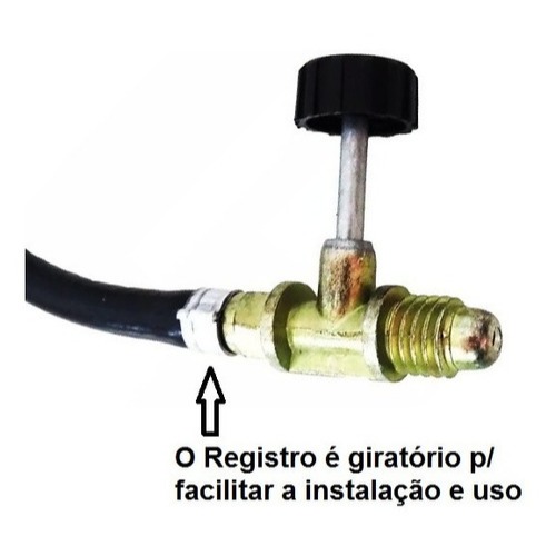 Seja bem vindo à lojas Cabral! Especialista em produtos para gás! MAÇARICO COM 2 REGISTROS - LANÇA CHAMAS, P/ BOTIJÃO DE 05 À 13 KG O Maçarico Lança Chama é um equipamento projeta chamas em longa e curta distância de maneira regulável. Possui 2 registros para maior praticidade! - Ideal para serviços na construção civil, bastante utilizado para aplicação de manta asfáltica, enchimento de balões, queima de cimento, entre outros. - Ideal para uso em indústrias e área agrícola; Características: - Possui 2 registros para regulagem da chama; - Cabo plástico com formato anatômico para as mãos, não causa queimaduras; - Registro giratório, facilita a instalação no bojitão e o uso, para girar; - Bocal zincado, evita oxidação; - Comprimento da mangueira: 1 Metro - Bocal com diâmetro 5cm, comprimento 8cm e chapa forte de 2mm - Possui 1 Registro com regulagem de chama p/ rosca do botijão de 5 à 13 kg Contem na embalagem: 01 maçarico com 02 registros reguláveis e 01 metro de mangueira; Temos opções de adaptadores para botijão P2, consulte! sku 68A