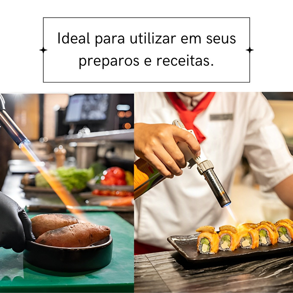 Maçarico Culinário Para Cozinha e Confeitaria aço inox 1300 graus