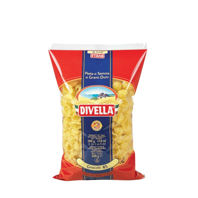 VOCÊ ESTÁ COMPRANDO: MACARRÃO DIVELLA 45 GNOCCHI 500G PAIS DE ORIGEM: ITÁLIA SOBRE O PRODUTO: O gnocchi apresenta formato que remete a sua tradicional massa fresca. Pode ser preparado em pratos com molhos vermelhos ou brancos. As massas Divella são feitas exclusivamente de grano duro 100% italiano, que trazem derivados do trigo com mais proteínas. A Divella desde 1890 é produtora de massa exclusivamente feita de Grano Duro e fabricada 100% na Itália. Sua inspiração continua a mesma desde seu início: passar a tradição da Puglia e da dieta mediterrânea por meio da autêntica massa italiana. Seus pilares podem ser resumidos em alguns pontos: Excelência na qualidade, atenção à saúde e segurança do consumidor, respeito ao meio ambiente e responsabilidade social.