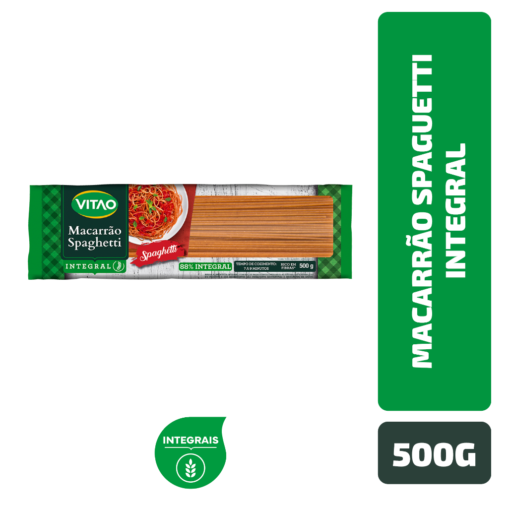 O Macarrão Spaghetti Integral da Vitao é a escolha perfeita para quem busca uma refeição saudável e saborosa. Feito com trigo integral de alta qualidade, ele preserva os nutrientes naturais do grão, como fibras, vitaminas e minerais. Sua textura firme e consistente é ideal para absorver molhos e temperos, garantindo uma experiência culinária deliciosa e nutritiva. Modo de preparo: • Ferva 3 litros de água e em seguida, junte o macarrão spagetthi VITAO e mexa levemente com um garfo para que fique solto. • Deixe cozinhar em fogo médio. • Tempo de cozimento: 7 a 9 minutos. • Após o cozimento, escorra a água e adicione o molho de sua preferência. • Serve até 5 pessoas. INGREDIENTES: Farinha de trigo integral, óleo de milho e corantes naturais urucum e cúrcuma. ALÉRGICOS: CONTÉM DERIVADO DE TRIGO. PODE CONTER OVOS, AVEIA, SOJA, CENTEIO, CEVADA, CASTANHA-DO-PARÁ, CASTANHA-DE-CAJU E AMÊNDOA. CONTÉM GLÚTEN. INTEGRAL, RICO EM FIBRAS.