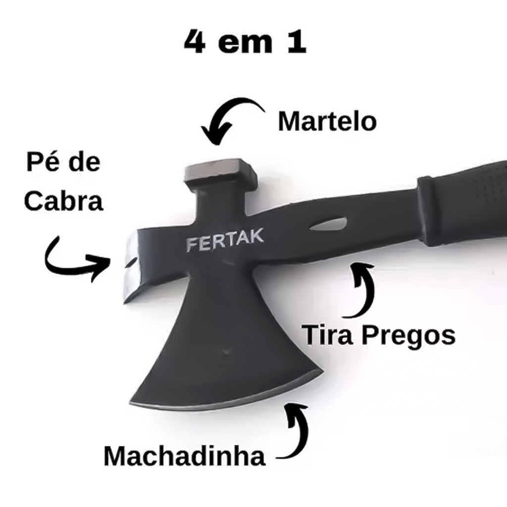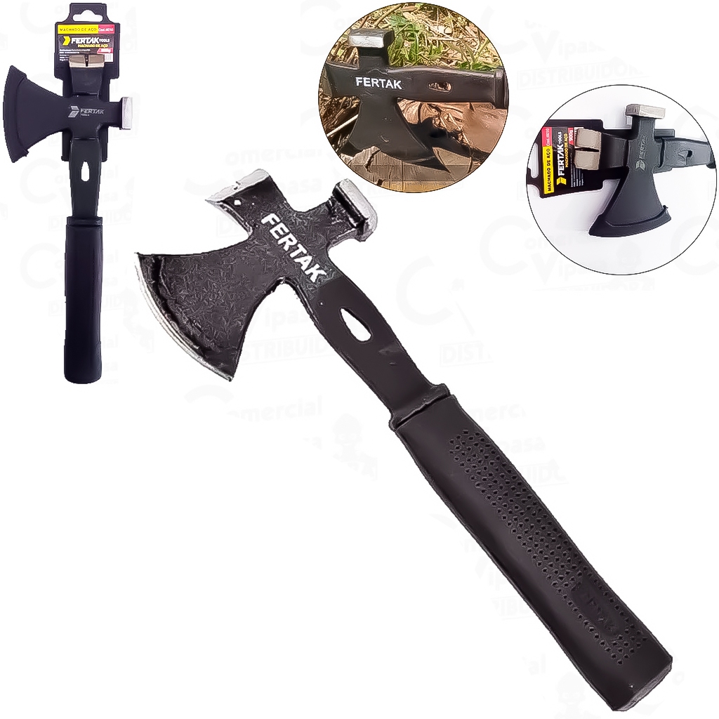 COMERCIAL VIPASA DISTRIBUIDORA Machadinha Machado de Aço 900g com Cabo Emborrachado Fertak A Machadinha Machado de Aço 900g com Cabo Emborrachado é multi funções e pode ser utilizada para realizar cortes em geral, possui corpo em aço forjado e cabo emborrachado, proporcionando melhor aderência ao ser manuseada. Características: › Cor Predominante Preto › Informação Complementar Não acompanha bainha › Material Corpo em Aço Forjado e cabo emborrachado › Largura 12cm › Comprimento 35cm › Peso 900g › Marca Fertak › Modelo 900g O "Machado Machadinha Tático Escoteiro Camping de Aço com Cabo Emborrachado 3 em 1 Profissional" é uma ferramenta versátil que pode ser utilizada para uma variedade de finalidades em atividades ao ar livre, como camping, escotismo, sobrevivência e atividades táticas. Corte de Lenha e Madeira: O machado é projetado para cortar lenha e madeira, sendo útil para preparar lenha para fogueiras, construir abrigos improvisados e realizar outras tarefas de carpintaria em ambientes ao ar livre. Trabalhos de Acampamento e Escotismo: É uma ferramenta útil para atividades de acampamento e escotismo, como cortar galhos para fazer fogueiras, construir abrigos, abrir trilhas e outras tarefas relacionadas. Ferramenta Tática: Devido à sua robustez e design, o machado também pode ser usado como uma ferramenta tática em situações de emergência ou autodefesa. Pode ser útil para cortar obstáculos, abrir portas ou quebrar vidros em situações de resgate ou evacuação. Uso como Martelo ou Martelinho: Alguns modelos de machado possuem uma extremidade que pode ser utilizada como martelo ou martelinho, o que é útil para fixar estacas, montar acampamentos e realizar outras tarefas que requerem batidas fortes. Cabo Emborrachado para Conforto e Aderência: O cabo emborrachado proporciona conforto durante o uso prolongado e oferece uma aderência firme, mesmo em condições úmidas ou escorregadias. O "Machado Machadinha Tático Escoteiro Camping de Aço com Cabo Emborrachado 3 em 1 Profissional" é uma ferramenta versátil e resistente, adequada para uma variedade de atividades ao ar livre, desde cortar lenha e realizar trabalhos de acampamento até servir como uma ferramenta tática em situações de emergência. COMERCIAL VIPASA DISTRIBUIDORA.