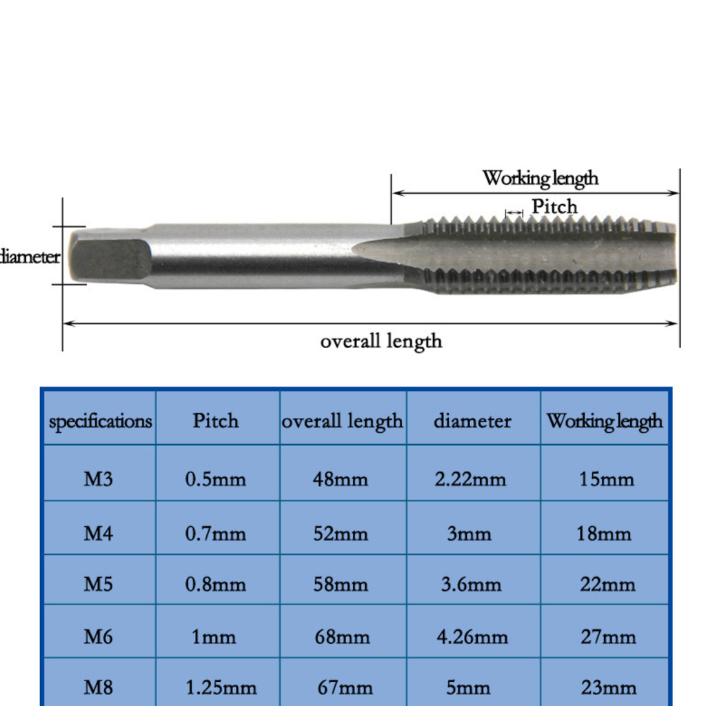 Macho Fazer Rosca Kit 6 Peças Com Rosca M3 a M8 Ferramenta