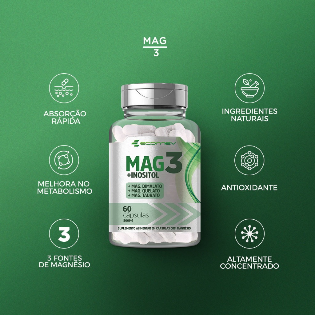 Mag 3 Magnésio Dimalato Quelato Taurato + Inositol 500Mg 60 Cáps Ecomev