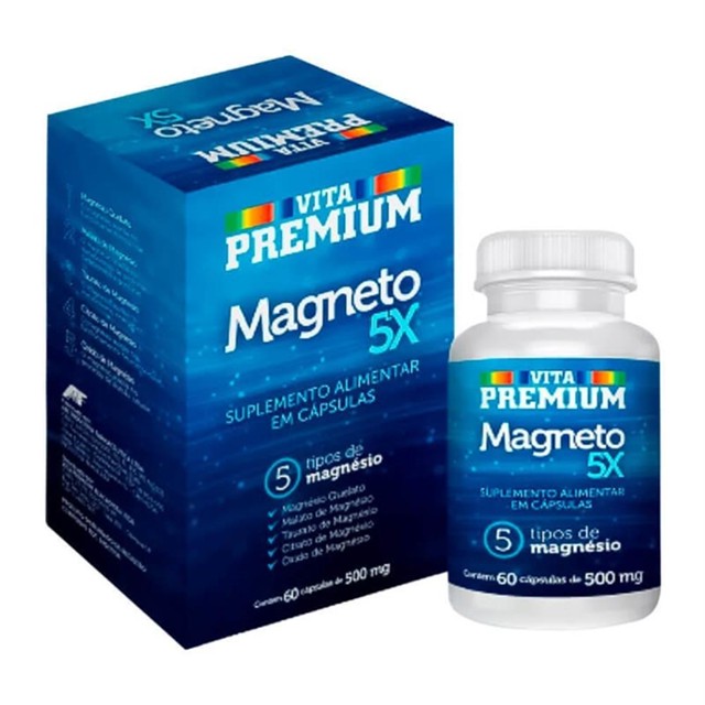 Magnésio 5X 500mg com 60 Cápsulas é usado para: - Auxiliar na suplementação alimentar à base de magnésio, promovendo melhora na formação de ossos e dentes à medida que auxilia o metabolismo energético, o funcionamento neuromuscular e o equilíbrio dos eletrólitos. Apresenta-se em embalagem com 60 cápsulas de consumo oral, sendo um produto destinado a adultos.